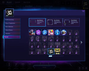 Portraits are special icons used to correspond players on the team select and match loading screens. The player'due south Actor Level, Hero League Rank or Team League Rank is displayed on the portrait. Portraits are purely cosmetic, and are designed to add personality and/or to brandish the actor's rank.